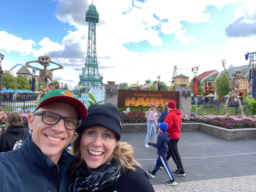 Hey, it’s Wes and Chanda, and we’re here to share our recent Halloween adventure at Kings Island’s Halloween Haunt. We’re lucky enough to have season passes, and this time we decided to splurge on Freight Lane passes, which set us back an extra $70 each. These passes granted us access to each haunted house once and threw in one bonus house, and it was a pretty sweet deal. We couldn’t help but reminisce about our visit to the park six or seven years ago, where we first discovered the value of these passes.