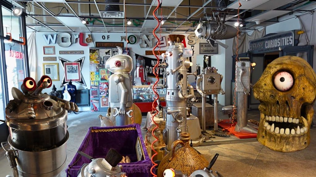 The exhibit is impressive, with three rooms filled with crazy robots, sculptures, and motion-activated displays. There’s a surreal charm to it, with a mix of weird and wonderful creations, like female Bigfoot sculptures, jolting skeletons, and even a mutant blob. It’s the kind of art that makes you want to push buttons and explore every nook and cranny.