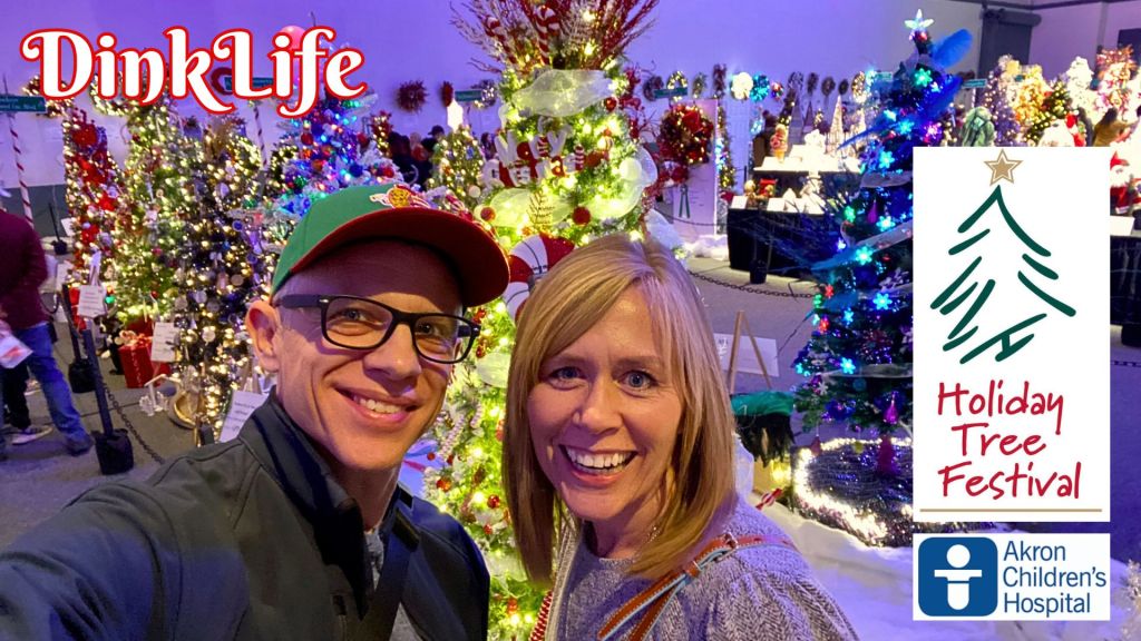 Hey, it’s Wes and Chanda, and welcome to DinkLife! We’re here at the John S. Knight Center in downtown Akron, Ohio, for the Akron Children’s Hospital Annual Tree Festival. This festive tradition, going strong for about 42 years, holds a special place in our hearts. Back in the ancient days of high school, Chanda’s choir used to perform here, making it a yearly family tradition.