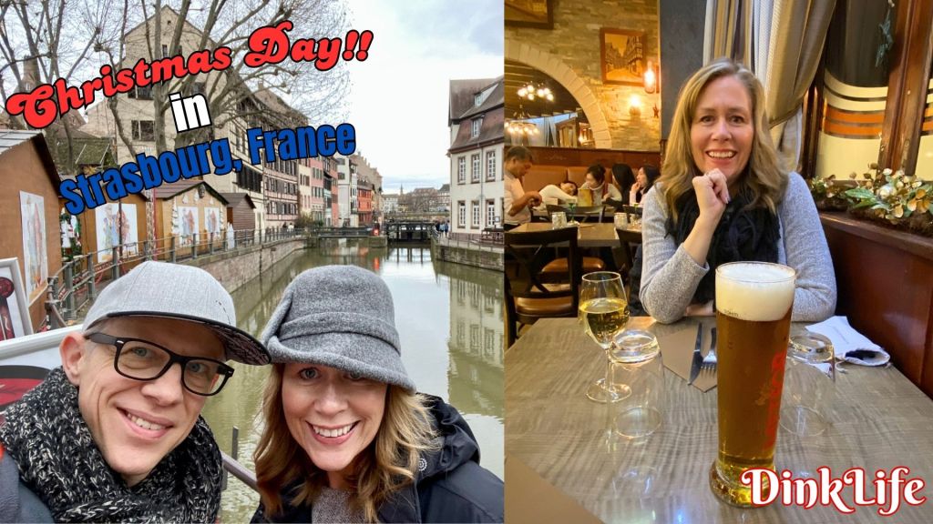 Hey, it’s Wes and Chanda, and welcome to a special Christmas Day edition of DinkLife! We find ourselves in the charming city of Strasbourg, France. Despite initially thinking everything would be closed, we’ve discovered that quite a few restaurants and touristy stores are open for the holiday. Right behind us stands the Notre-Dame Cathedral, not the famous one in Paris, but still a beautiful landmark. Today, the cathedral had three services, and we’re about to explore it in between the masses. Join us as we take you on a tour of this historic site and wander through the festive city streets.