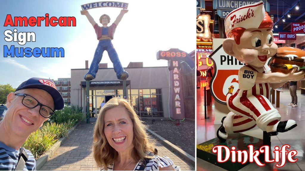 Hey, it’s Wes and Chanda, and welcome to DinkLife! We’re in Cincinnati, Ohio, revisiting the American Sign Museum. It’s been 10 years since our last visit, and honestly, I remember bits and pieces, but so much has changed since then. We figured it was time to come back, explore what’s new, and bring you along for the ride. As soon as we pulled up, we noticed they’ve added some new displays outside the building, which was already a good sign (pun intended). Let’s head inside and check things out!