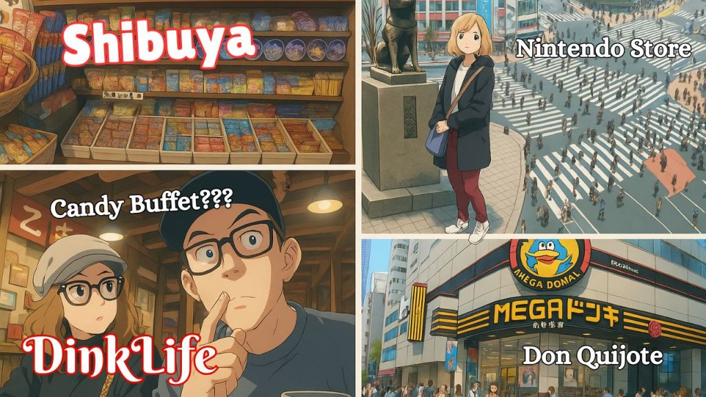 We capped off our Shibuya day at the Nintendo Store Tokyo. It was our first time visiting and it didn’t disappoint—there was everything from Donkey Kong merch to Animal Crossing kettles and Splatoon toys. By the end of the day, we were exhausted but thrilled. If you’re ever in Tokyo, Shibuya is a must-visit for candy lovers, gamers, and shopaholics alike. Remember, as always, whatever you decide to do, just get out there and do it!